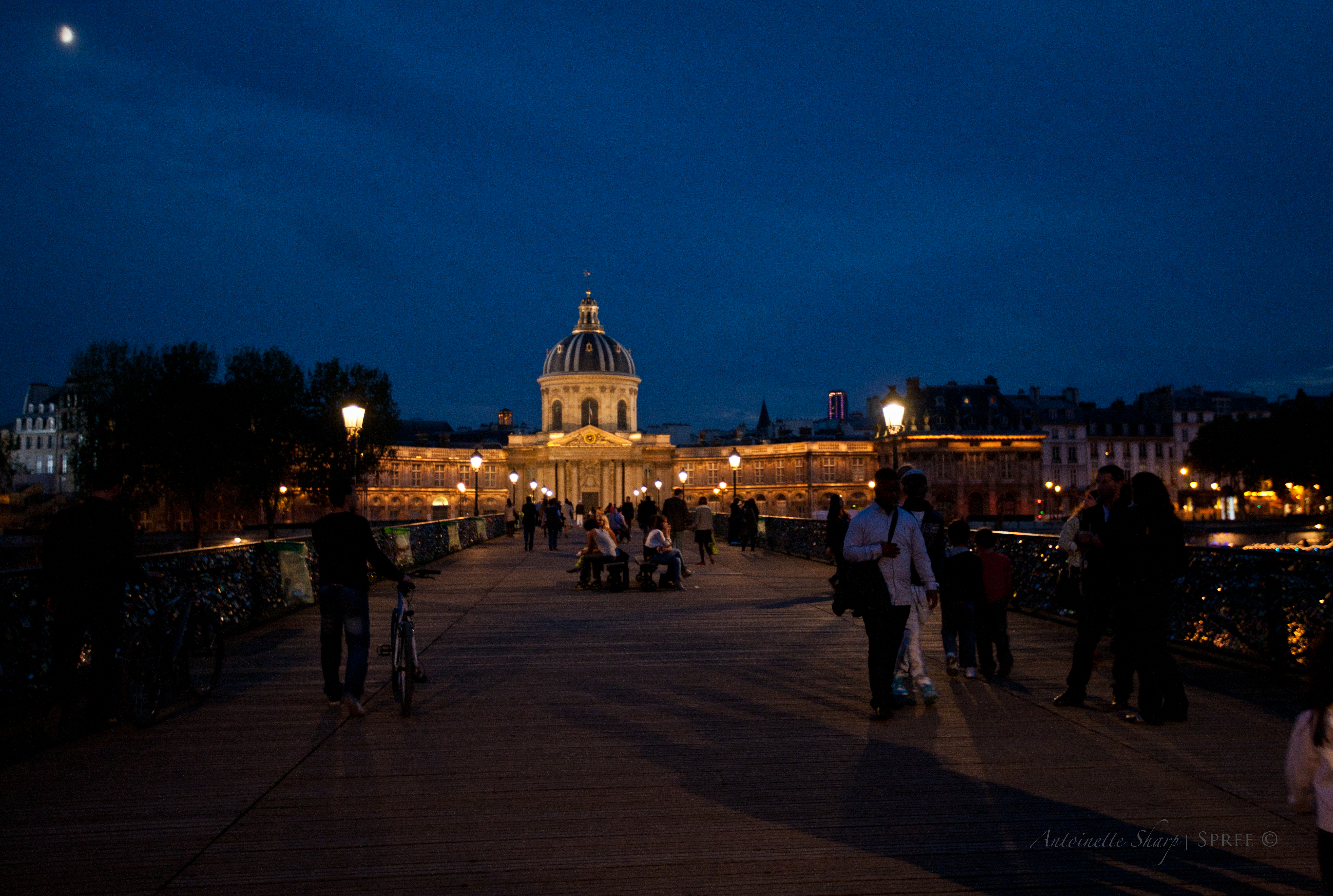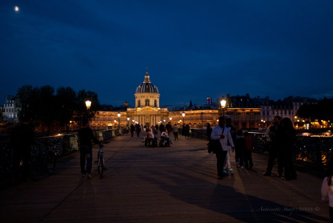 Walking the foot bridge over the Seine…